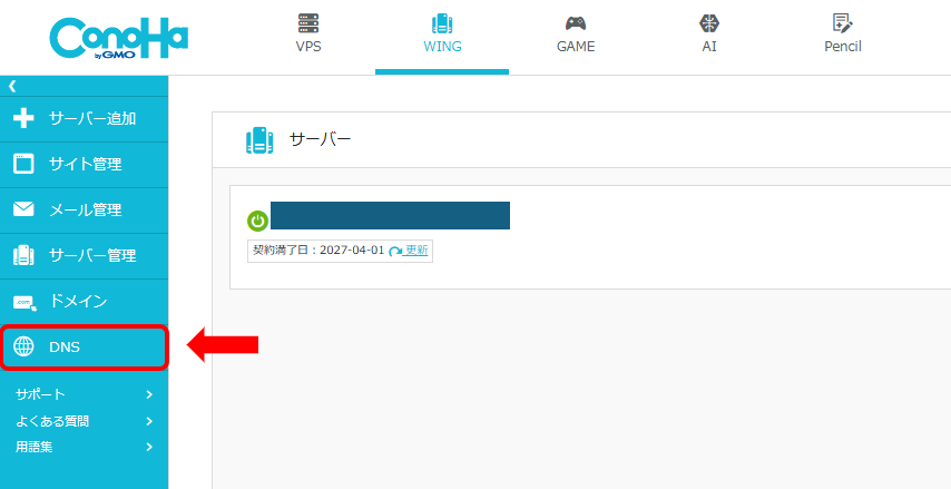 5.私の場合はConoHa WINGを使用してるので、新しいタブを開きConoHa WINGのコントロールパネルにログイン