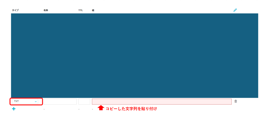 8.タイプをTXTに変更 (4.DNSレコードでのドメイン所有権の確認 ①で選択しているレコードタイプがTXTなので)
